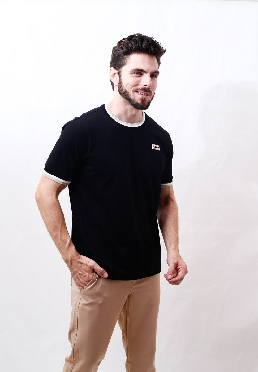 Camiseta Masculina Gola Redonda Etiqueta Emborrada