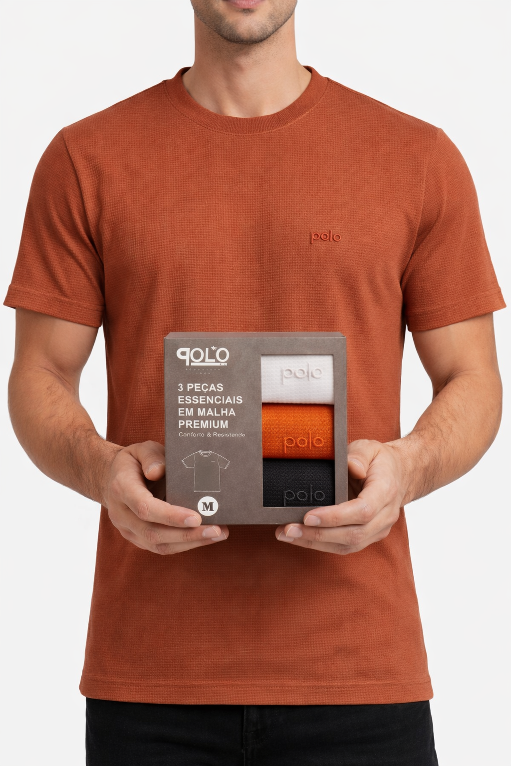 Camiseta masculina adulto confeccionada em malha waffle premium, proporcionando textura diferenciada, conforto e excelente caimento.